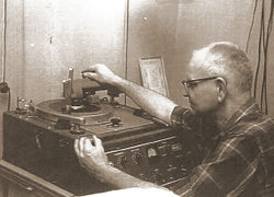 Firestone working on his record cutting machine